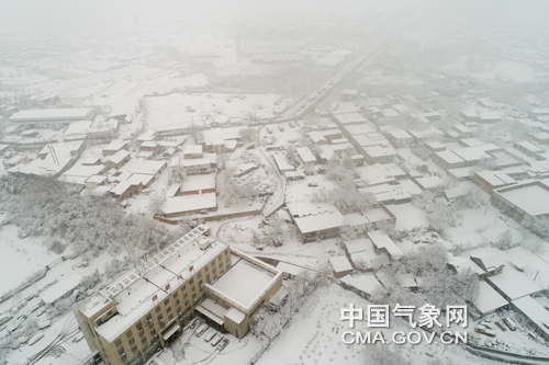 自1月3日12时起,安徽省合肥市自北向南陆续出现雨雪降温大风天气,合肥市气象台于1月3日21时将暴雪黄色预警提升为橙色,同时还发布了寒潮蓝色预警和道路结冰黄色预警。据监测数据显示,截至4日8时,长丰县降雪量达到29毫米,肥西县28毫米,肥东县22毫米,合肥市19毫米,最大积雪深度达到21厘米。受暴雪天气影响,目前合肥市部分学校已变更上下学时间,以保障孩子路途安全;合肥交警根据天气变化情况,提高勤务等级,全力迎战雨雪冰冻天气;城管局出动7200名应急人员、199台扫雪除冰车辆铲雪保畅;供水、供电公司24小时待命,做好应急抢修准备。图为无人机拍摄的雪景,白雪覆满城。唐晓东 摄影 中国气象报通讯员 唐晓东 吴大慧