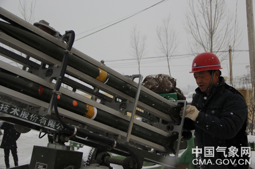 1月2日下午开始,陕西省铜川市迎来了今年首场降雪。截至3日8时,全市范围出现降雪,宜君雪深2厘米;王益雪深1厘米;耀州雪深1厘米。从1月3日9时至14时,铜川市人影办组织了全市范围内的增雨雪作业,宜君5个作业点、印台1个作业点、耀州5个作业点,与省人影办联合在铜川全境开展飞机增雨雪作业2架次。图为铜川市耀州区石柱镇作业点开展增雪作业。中国气象报记者 王龙 通讯员 董亚龙
