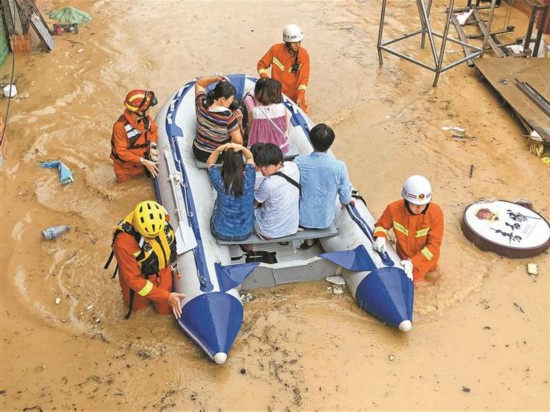 深圳特大暴雨连灌两天 消防官兵用冲锋舟救援被困群众