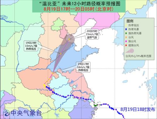 根据气象预报,“温比亚”将于8月20日上午移入渤海,并变性为温带气旋。董林介绍,台风变性为温带气旋并加强的现象,在中国发生的几率并不是很高,但是一旦发生,往往会造成严重的风雨影响。