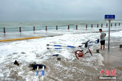 8月18日,受今年第18号台风“温比亚”影响,青岛沿海掀起巨浪。 王海滨 摄 图片来源:视觉中国