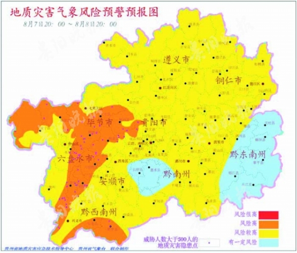 黄色预警共有62个县(市、区):云岩、南明、观山湖、白云、修文、乌当、花溪、开阳、遵义市(含汇川、红花岗、桐梓等13个县市区)、铜仁市(含碧江、万山、江口、思南等10个县区)、仁怀、钟山、兴仁、贞丰、望谟、关岭、镇宁、紫云、西秀、平坝、罗甸、平塘、独山、龙里、贵定、福泉、都匀、荔波、瓮安、三都、丹寨、麻江、雷山、台江、剑河、三穗、施秉、镇远、岑巩、黄平、金沙。 (记者 曾秦 张晨)