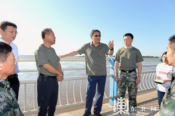 王文涛在绥化市北林区呼兰河秦家大桥上部署下一个洪峰到来前做好安全工作预案。孙强摄