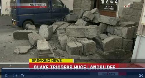 日本NHK报道称,在阿比拉镇,一山脊脚下的大量房屋被巨大的山体滑坡压坏,道路也被压坏。