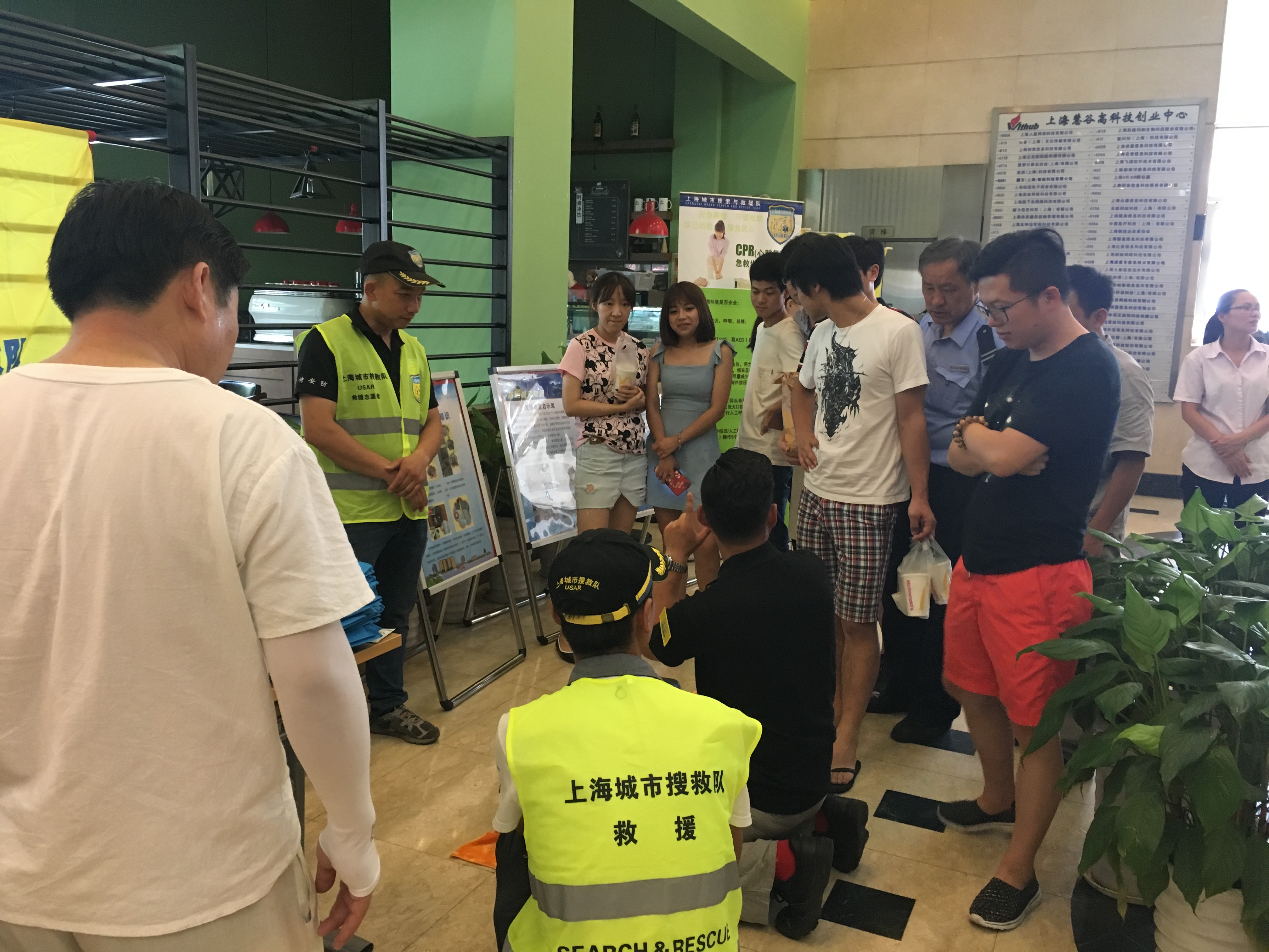 7月28日,上海城市搜救队在上海市徐汇区地震办公室的指导下,在上海科汇高新技术创业园、上海慧谷高科技创业园等地开展宣传活动,通过展板宣传、科普资料发放、装备展示、急救现场模拟演示、现场教授等方式向园区员工等宣传地震紧急避险和应急救护知识。园区企业员工近300人参加本次活动。
