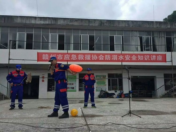 赣州市应急救援协会赣南公益救援支队在暑期先后走进赣州市章贡区和大余县的52所中小学校园,开展暑期安全防溺水知识培训,向在校师生讲解了在开放水域游泳、戏水的危险性,讲授了水上自救互救技能,帮助增强青少年“防溺水”安全意识。