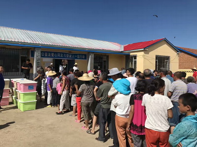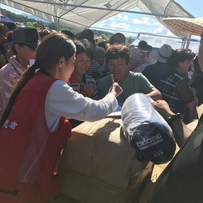 原计划7月14日早上5点前往永吉重灾区,但因洪水造成道路大面积损毁,淤泥堵塞道路,协会救灾工作组于15日才进入到灾区。由于永吉县物资暂时无法进入,救灾工作组首先来到了受灾严重丰满区旺起镇。针对旺起镇11个村2000多户受灾情况。协会16日筹集了6000箱矿泉水、300个家庭救灾箱、800个睡袋、20顶帐篷以及针对受灾儿童建立的儿童服务站总价值70万元救灾物资。从17日起对旺起镇各个村进行物资发放。