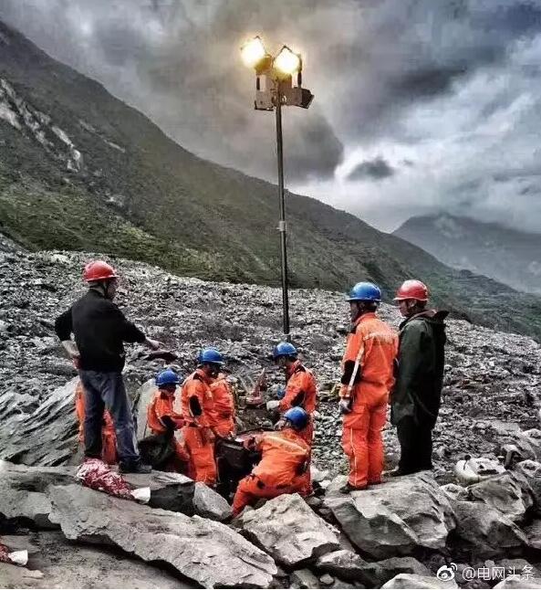 17时20分,茂县山体垮塌救援现场的第一盏应急照明灯亮了,为抢险带来光明与希望。