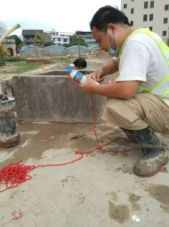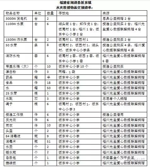 坂尾村情况:已和村干部对接,由其统一安排三天时间清理15口水井。我方提供两台水泵:一台1500W的污水泵,一台1100W的常用电水泵,绳子两根,50水管2条,消防水枪1套。三天后由福州光盐爱心救援联盟志愿者联络收回。在这三天里创绿中心和光盐爱心救援联盟会培训村民洗井和消毒技术,并发放消毒包。
