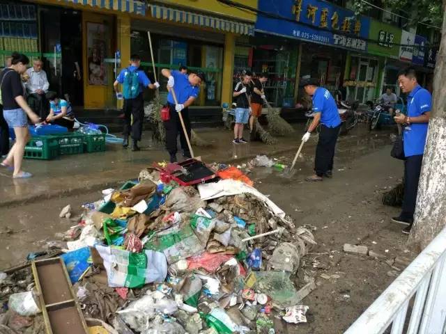 江苏: 中国社会福利基金会蓝豹救援队南京队员12人3车携带防护装备和药品,在南京市内受灾严重街道进行居民安置、清淤等工作。
