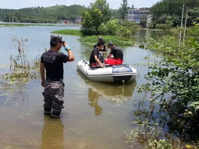 江西:中国社会福利基金会救灾救援部统一调度蓝豹救援队队员在武宁开展勘查灾情等工作。