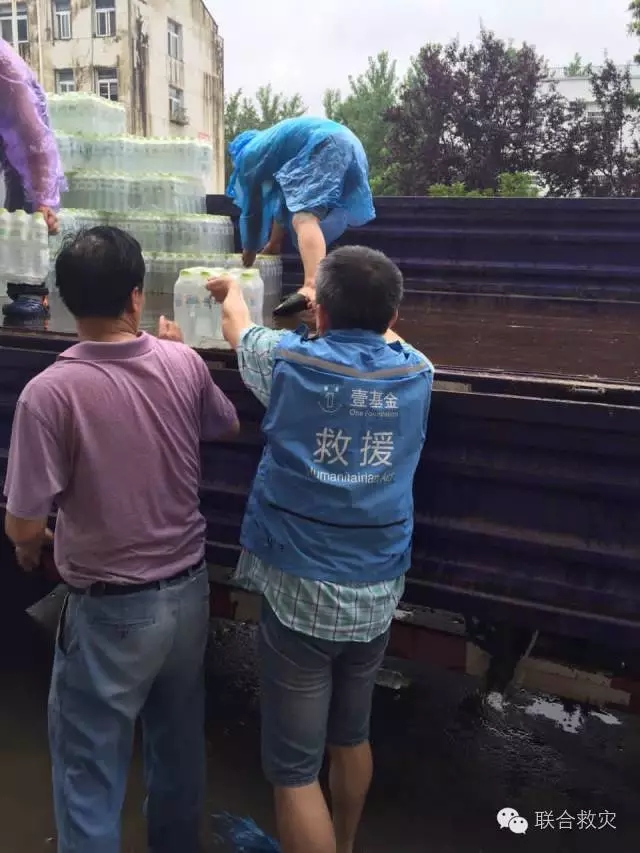 壹基金联合救灾网络于7月4日向武汉市、麻城市、孝感市三市紧急调运216000瓶饮用水。在湖北麻城市发放冰露水12432瓶,在孝感市孝南区发放24000瓶。36600瓶冰露水到达武汉市新洲区,发往三店镇24168瓶件、辛冲镇12432瓶。7月5日在麻城市发放45840瓶饮用水,在武汉市新洲区涂河村发放16800瓶饮用水。2000床棉被、60000条编织袋、500件彩条布陆续出库发往灾区。并开展灾情评估。