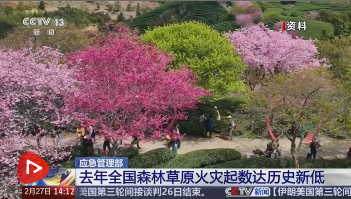 [央视]新闻直播间|应急管理部 去年全国森林草原火灾起数达历史新低 2026-02-28 08:49 -