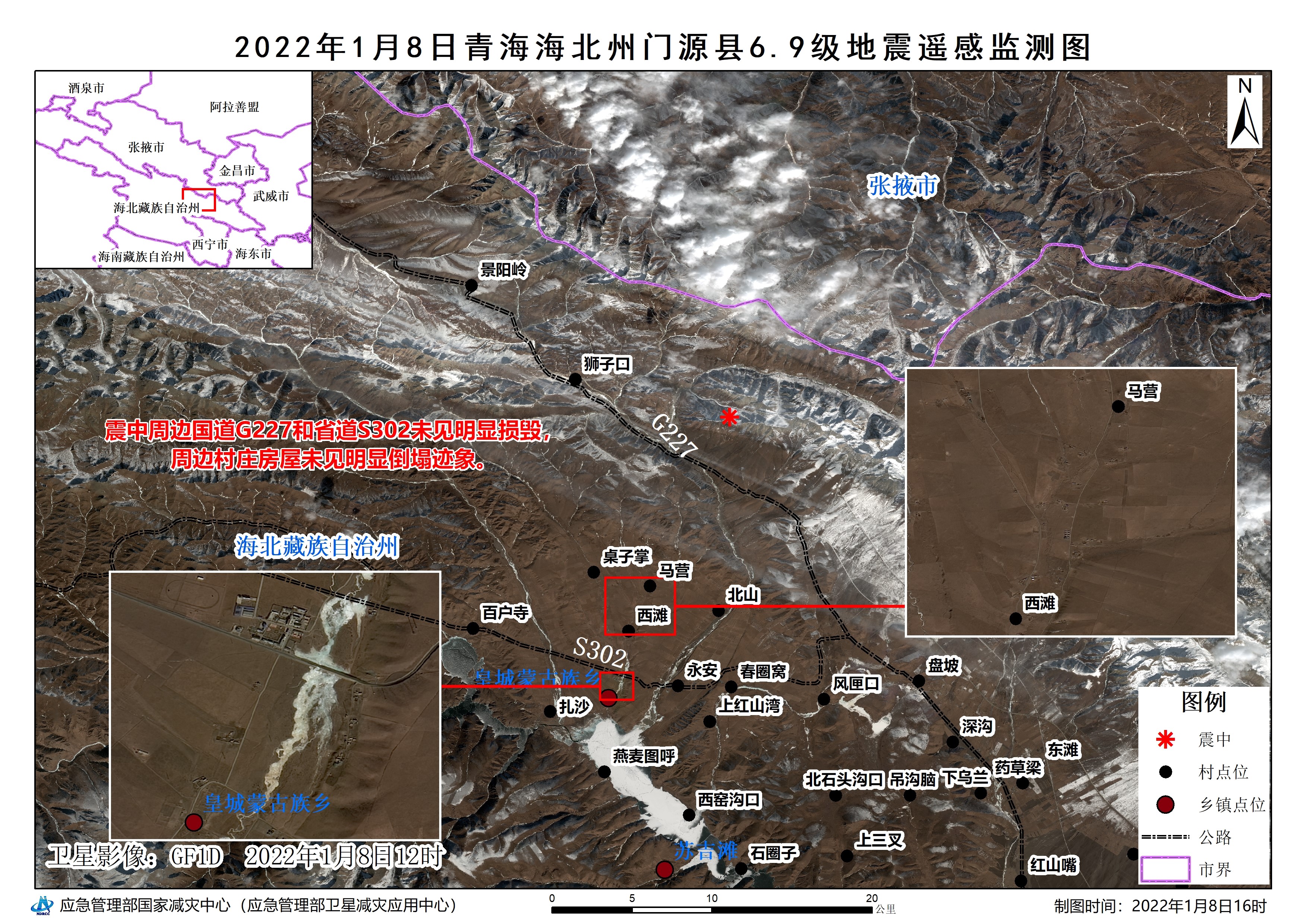 2022年1月8日青海海北州门源县6.9级地震遥感监测图