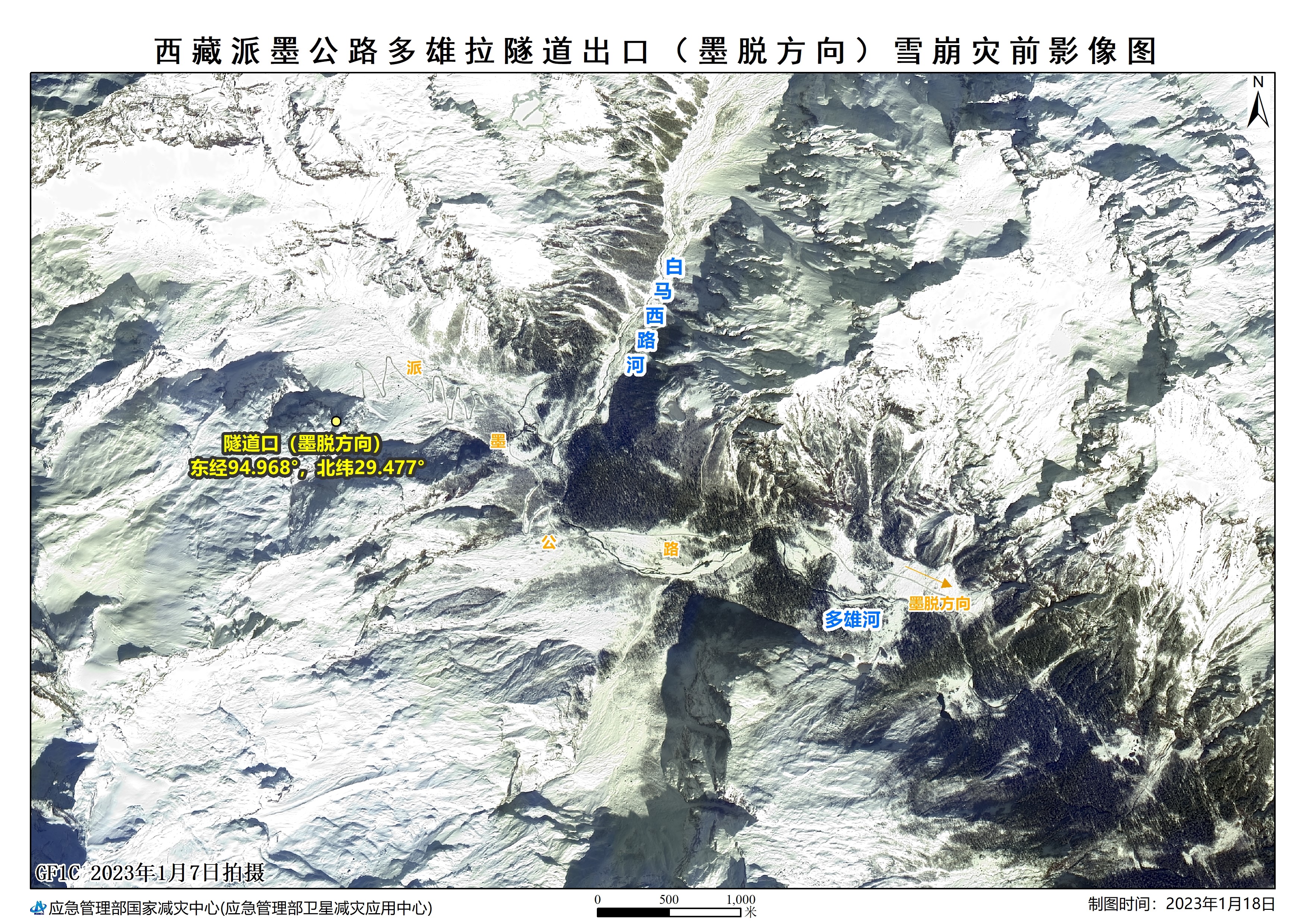 西藏派墨公路多雄拉隧道出口(墨脱方向)雪崩灾前影像图