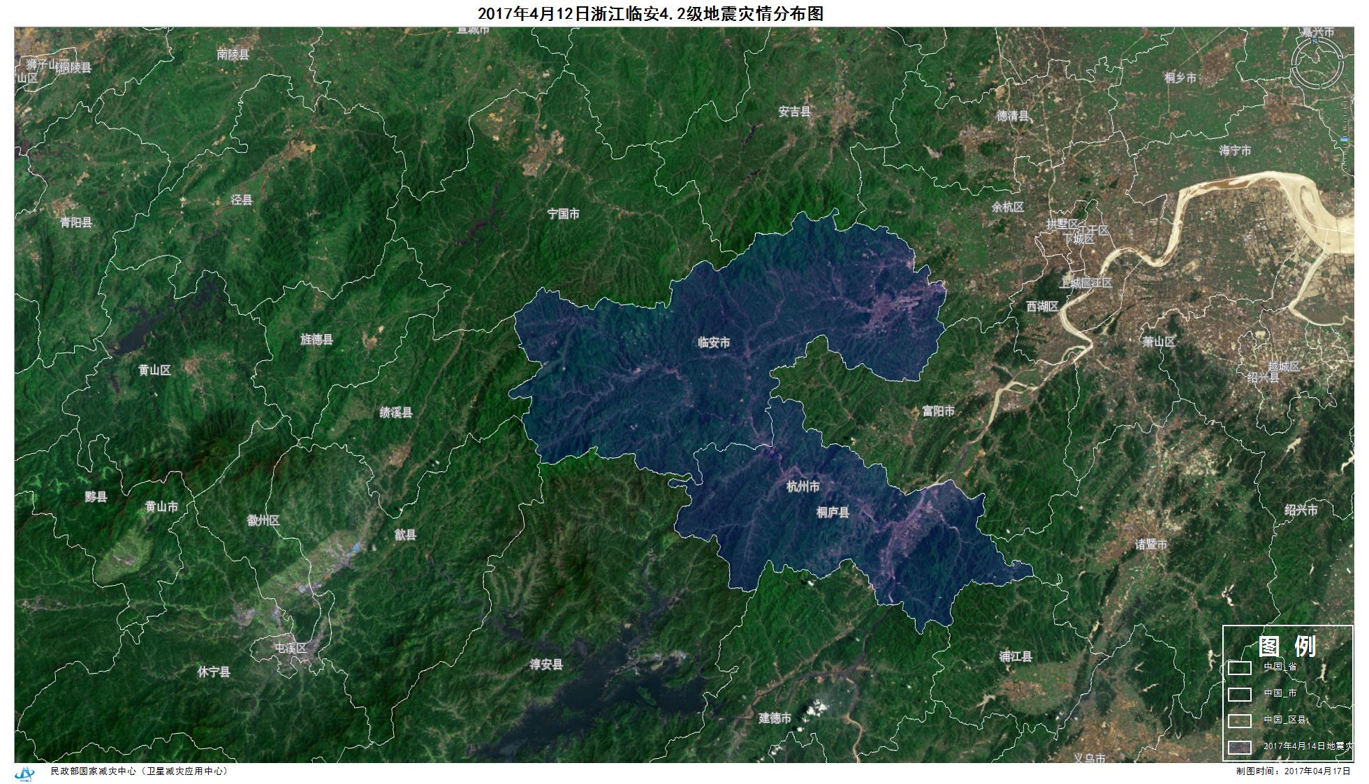 2017年4月14日浙江临安4.2级地震灾情分布图