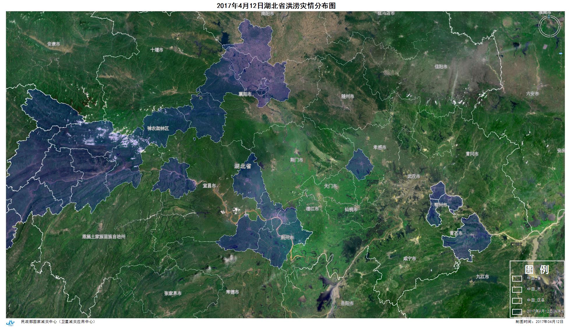 2017年4月12日湖北省洪涝灾情分布图