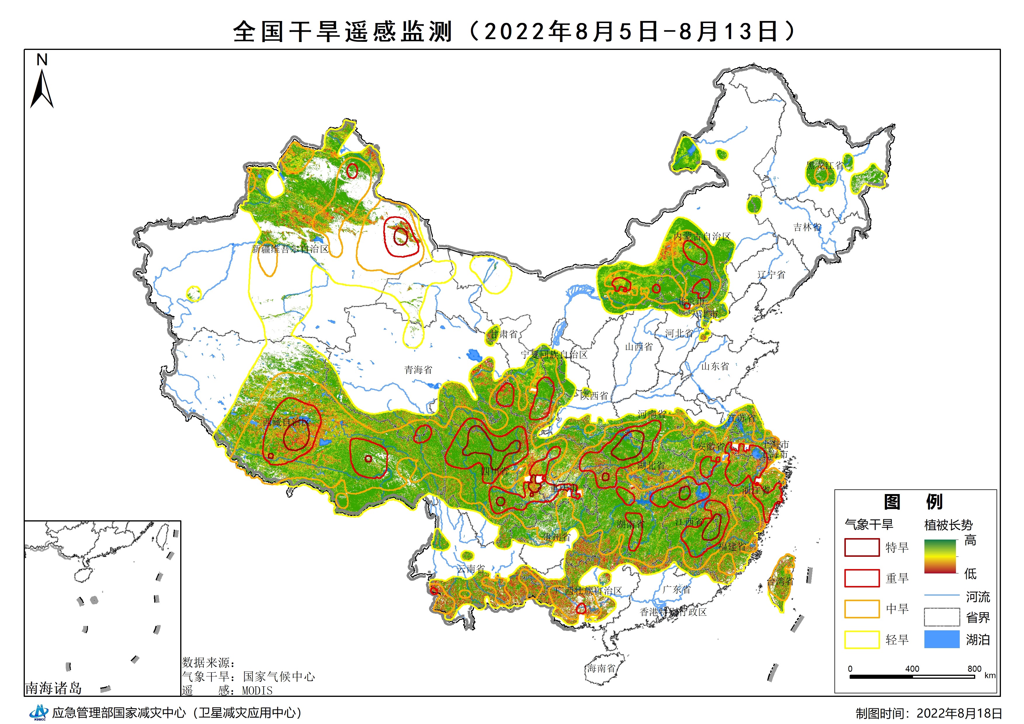 全国干旱遥感监测(2022年8月5日—8月13日)