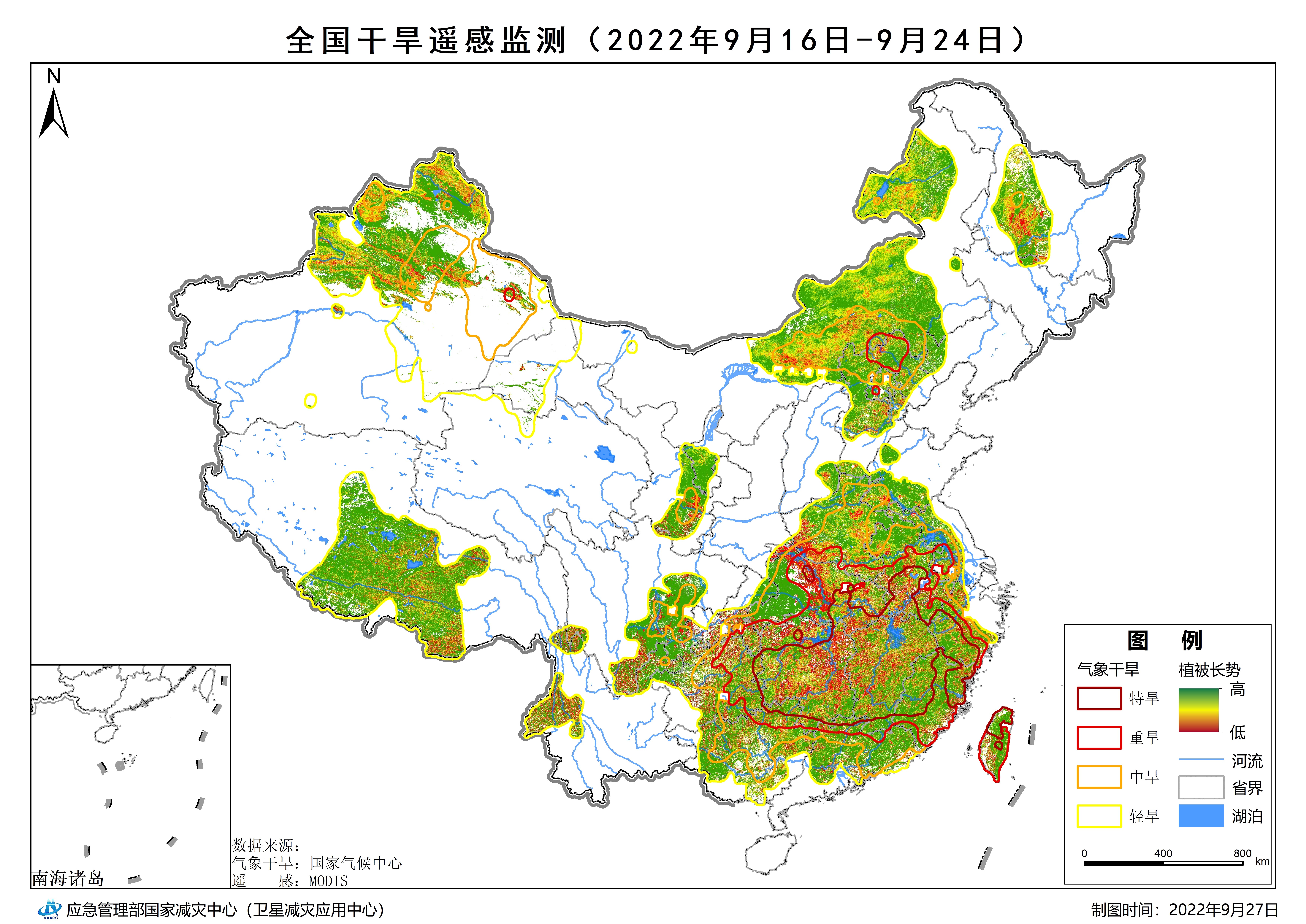 全国干旱遥感监测(2022年9月16日—9月24日)