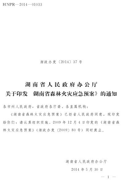 湖南省森林火灾应急预案